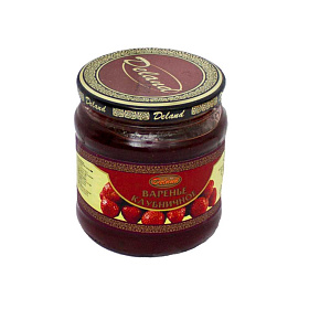 Cироп глюкозы, сахар, вишня, вода питьевая, регулятор кислотности лимонная к-та, загуститель пектин, стабилизаторы: камедь рожкового дерева и полифосфат натрия, ароматизаторы, натуральный пищевой краситель кармин, консервант сорбат калия.
