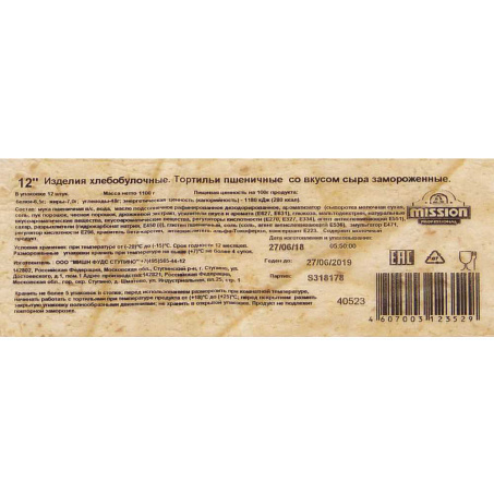 Лепешка пшеничная сырная (тортилья) 12 дюйм/30см 12шт/уп Mission Мишн Фудс (40523) (КОД 10133) (-18°С)