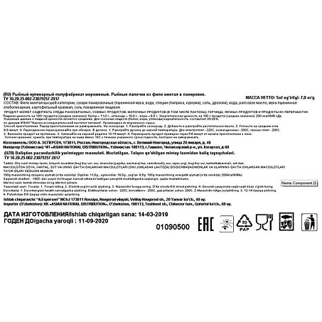 Рекомендации по приготовлению: Подвергнуть тепловой обработке до кулинарной готовности