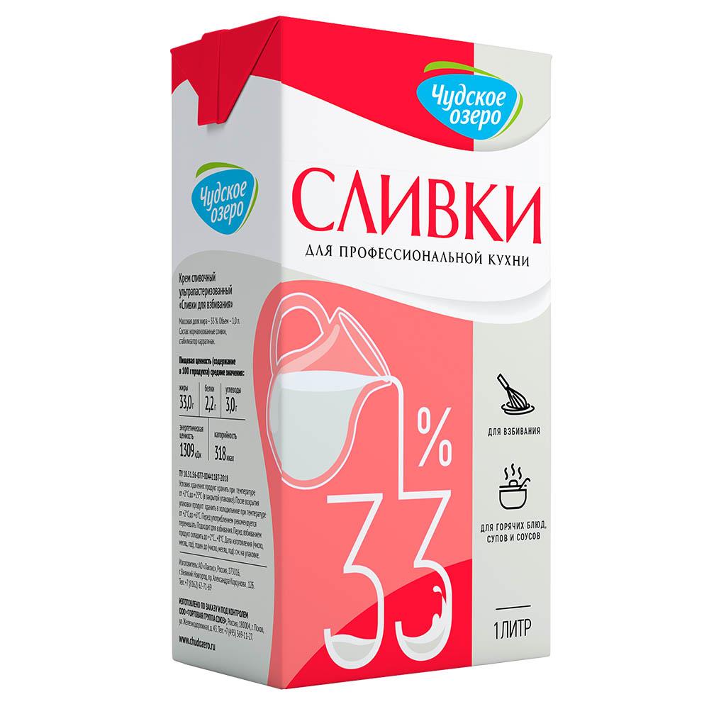 Сливки «Чудское озеро» 33% – самые популярные сливки как среди профессиональных поваров, так и у домашних кулинаров. Продукт представляет собой идеальное соотношение цены и качества: сливки