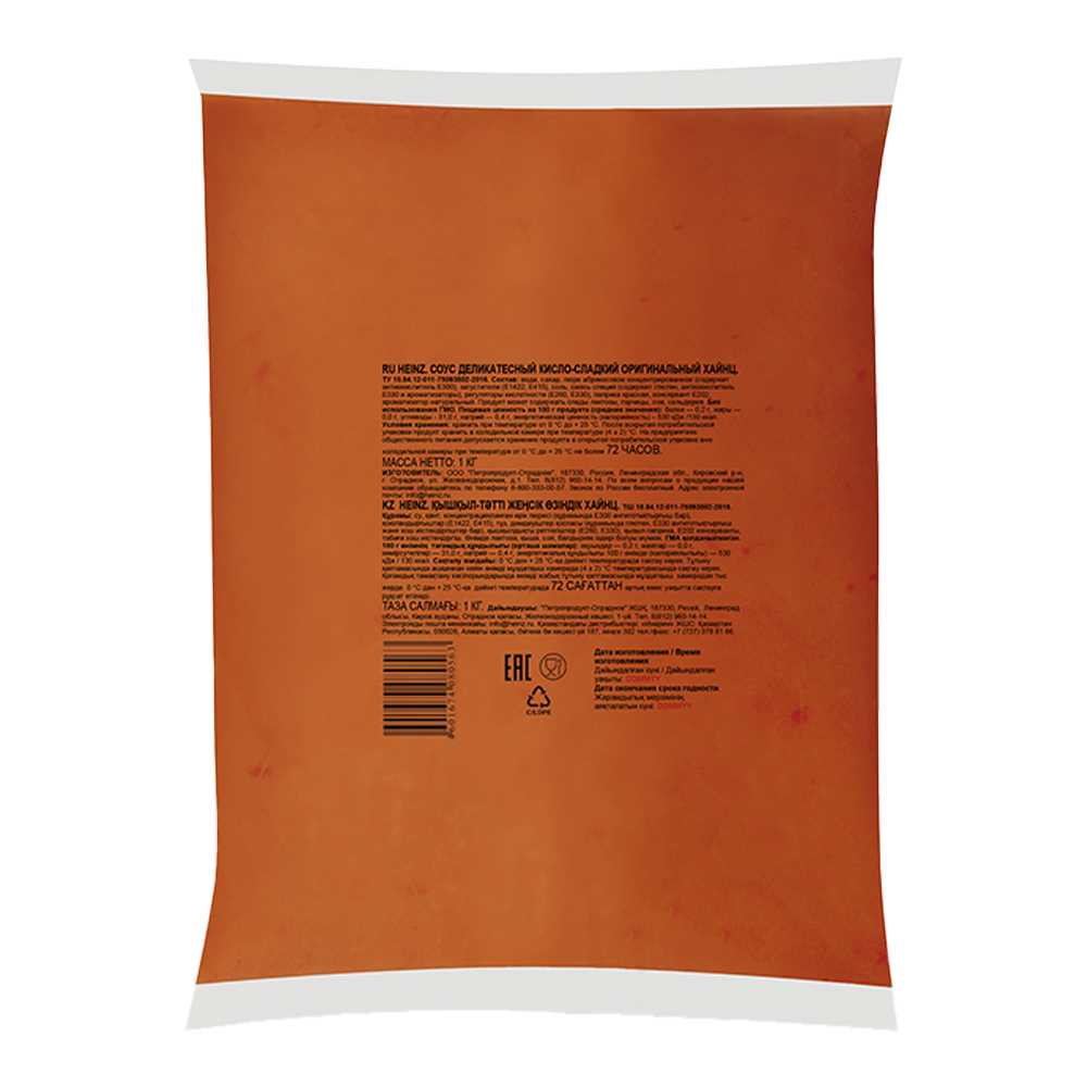 Купить готовый соус Кисло-сладкий Хайнц можно в специальной упаковке балк для профессиональных кухонь ресторанов и отелей, кафе и баров. Формат балк для HoReCa обеспечивает максимальную гигиеническую защиту, реализацию продукта равномерными порциями и без потерь, удобное хранение, транспортировку и утилизацию.