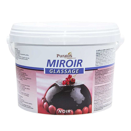 Глазурь кондитерская "Мируар Глассаж Нуар". Для нанесения на поверхность изделий. Только для профессионального использования в пищевой промышленности. Плотно закрывать упаковку после каждого использования.