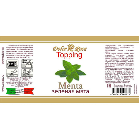 Топпинг Мята зеленая 1кг пл/б Dolce Rosa™ Россия (КОД 93437) (+18°С)