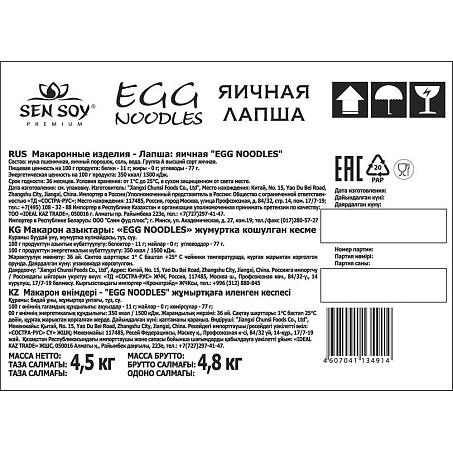 Лапша яичная Egg Noodles 4,5кг/кор Sen Soy™ Китай (КОД 11570) (+18°С)