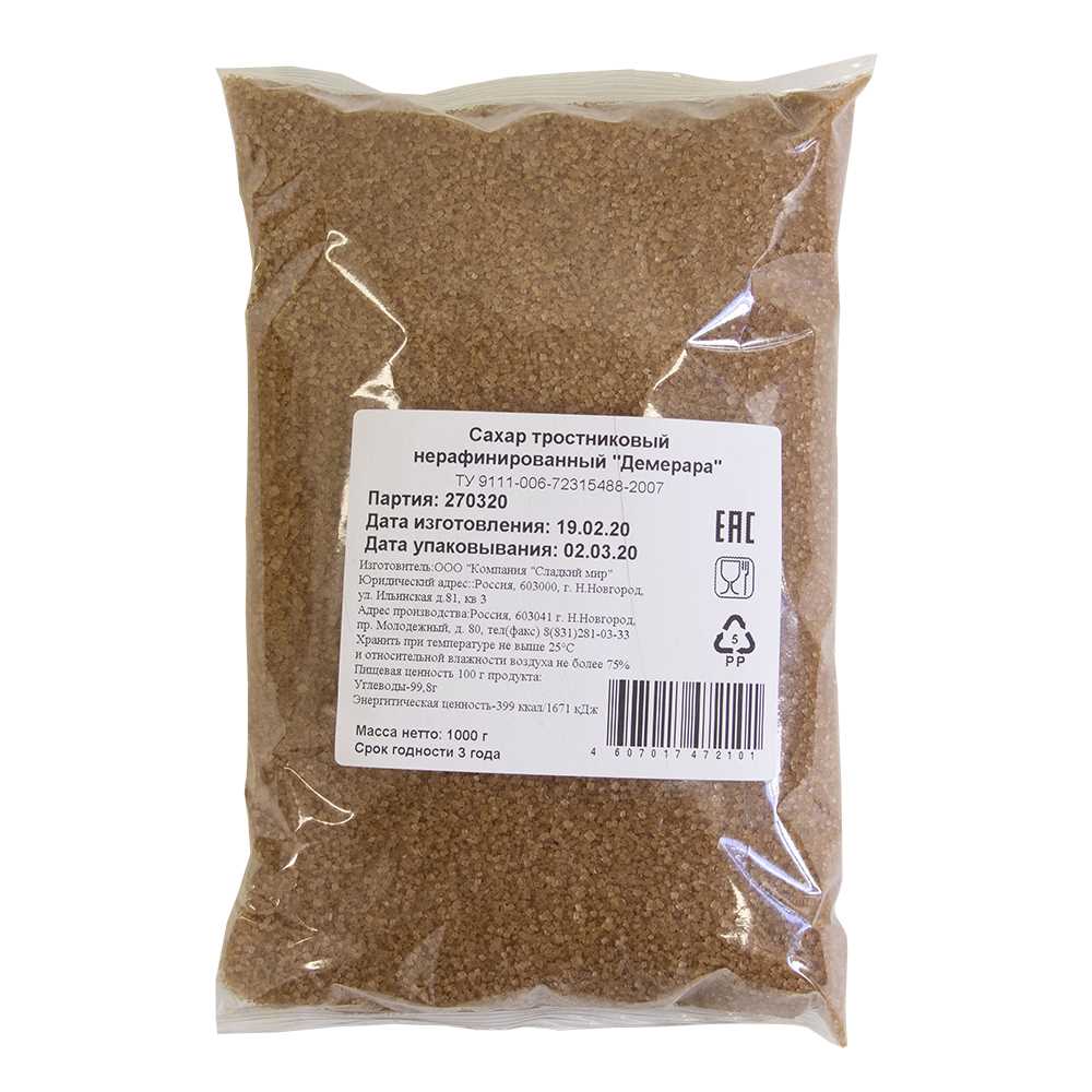 Сахар тростниковый коричневый нераф песок Демерара 1кг/пакет Сладкий Мир Россия (КОД 21071) (+18°С)