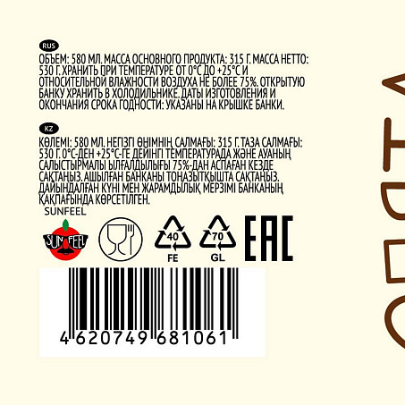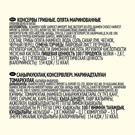 Грибы Опята целые марин 530гр/580мл (осн.пр.315гр) ст/б Sunfeel™ Китай (КОД 87279) (+18°С)
