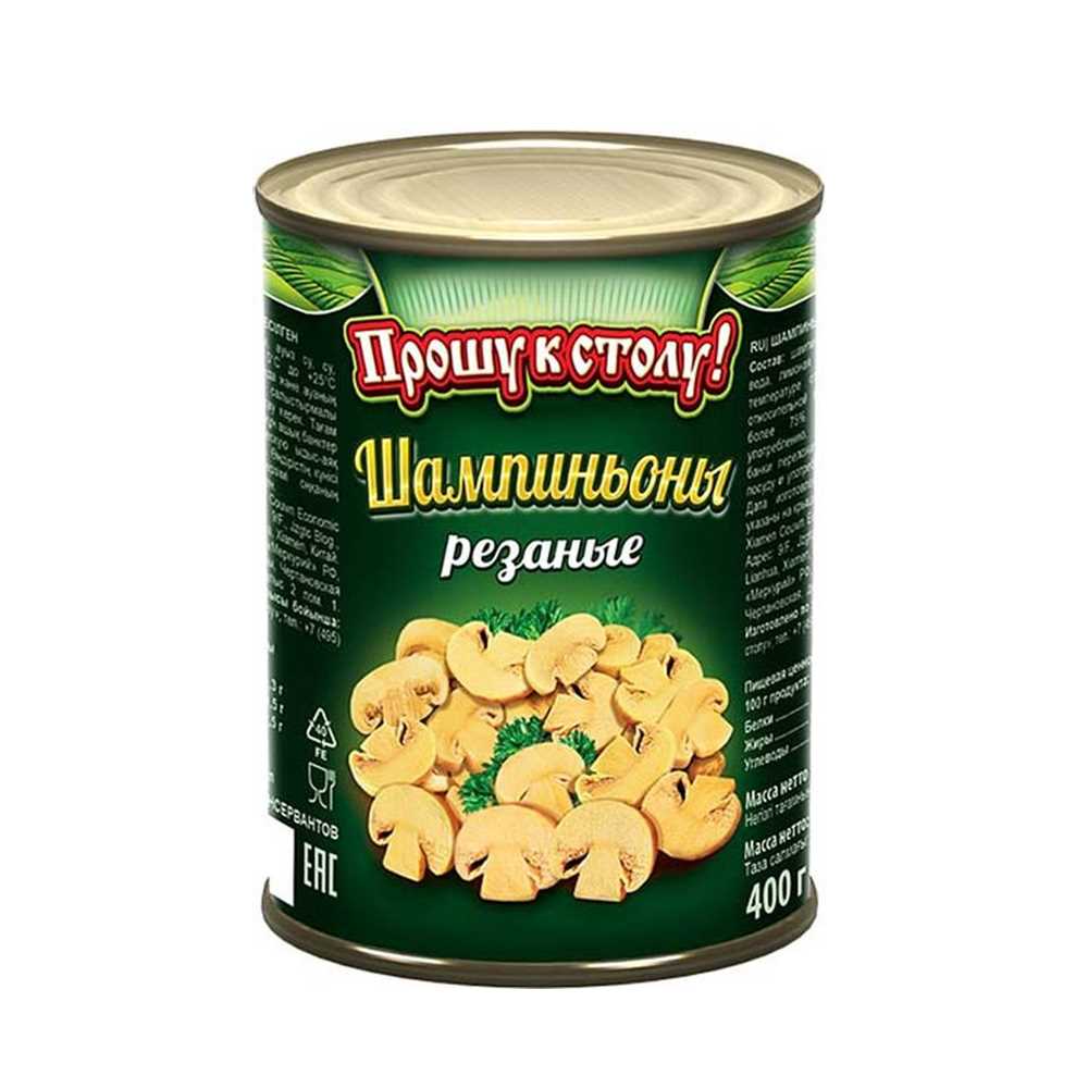 Грибы Шампиньоны резаные 2,84кг/3,1л (осн.пр.1,93кг) ж/б Прошу к столу™Китай (ПУ) (КОД 24275) (+18°С)