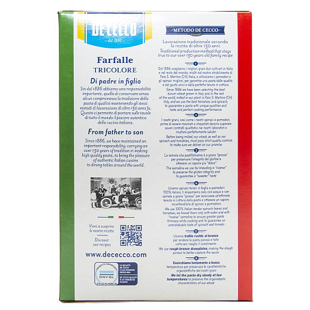 Это одно из фирменных макаронных изделий De Cecco, созданное для того чтобы внести неповторимую «изюминку» в Ваши рецепты избранными ингредиентами: томатов и нежных листьев шпината. Фузилли принадлежат классу короткой пасты с прямым срезом, родом