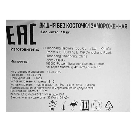 Вишня с/м б/к 10кг/кор 1класс Китай (ПУ) (КОР) (КОД 10011) (-18°С)