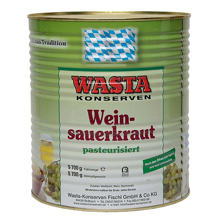 Капуста квашеная белокочанная 9,7 кг ж/б Wasta Konserven Германия (КОД 38498) (+18°С)