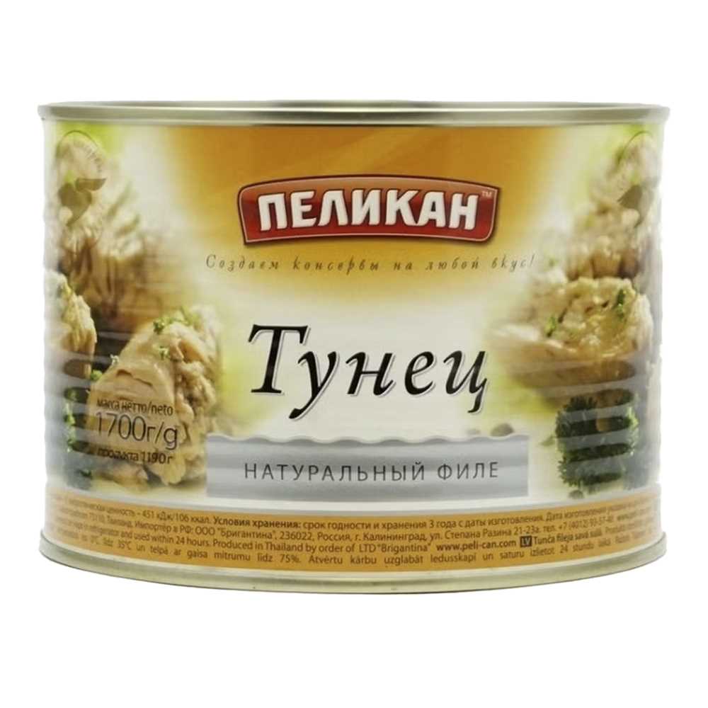 Тунец консерв. в собст.соку кусочки 1,7кг (осн.пр.1,2кг) ж/б Пеликан™ Таиланд (КОД 49497) (+18°С)