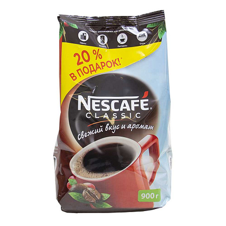 Кофе растворимый 900гр/пакет Nescafe Classic™ Нестле Россия (123742) (КОД 16738) (+18°С)