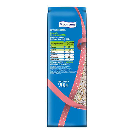 Крупа перловая 900гр/пакет Мистраль Россия (96621610) (КОД 24235) (+18°С)