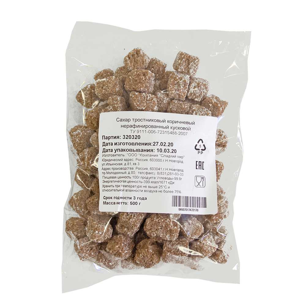 Сахар тростниковый коричневый нераф кусковой 500гр/пакет (стр.пр.сырья Колумбия) Россия (КОД 23097) (+18°С)