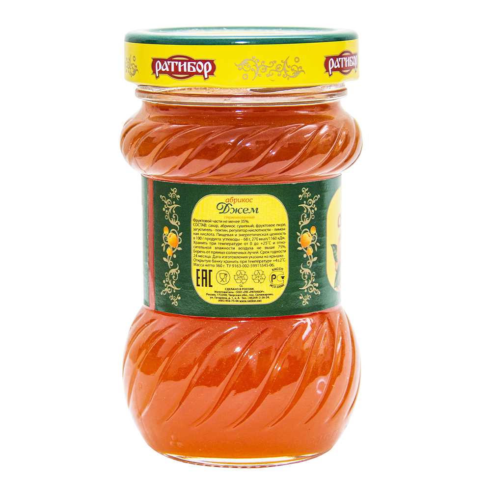 Джем абрикос более 35% фрукт 360гр ст/б Ратибор Россия (15434426) (КОД 77247) (+18°С)