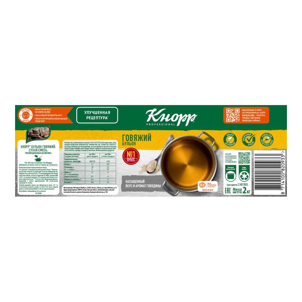 Бульон говяжий 2кг пл/в сух. концентрат Knorr Professional™ КДВ Тула Россия (КОД 51147) (+18°С)