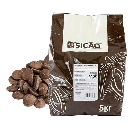 Шоколад молочный 31,7% таблетки 5кг/пакет Sicao Россия (CHM-T13-25B) (КОД 49120) (+18°С)
