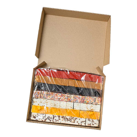 сыр творожный (сливки нормализованные, молоко обезжиренное, соль, закваска), сливки пастеризованные 33%, сметана 20%, маргарин столовый (растительные масла, вода, эмульгатор соевый лецитин, регулятор кислотности - лимонная кислота), творог 9% (молоко обезжиренное, молоко цельное, закваска, препарат ферментный молокосвертывающий), молоко сгущенное с сахаром, вареная сгущенка, масло сливочное 82,5%, масло подсолнечное, сахарный песок, мука пшеничная, морковь свежая, меланж яичный, мёд цветочный, пюре манго, пюре маракуйя, малина с/м, орех грецкий, посыпка декор (сахар, какао-масло, молоко сух., краситель пищ.), крахмал картофельный, какао-порошок, желатин, мак пищевой, паста фисташковая, фисташки, корица, разрыхлитель-сода пищевая, соль, ароматизатор идентичный натуральному «ванилин», красители пищевые. Может содержать следы арахиса и других орехов.