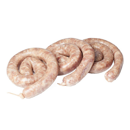 свинина, вода питьевая, лук, соль повареная пищевая, стабилизатор (фосфат пищевой), натуральные специи (перец белый).