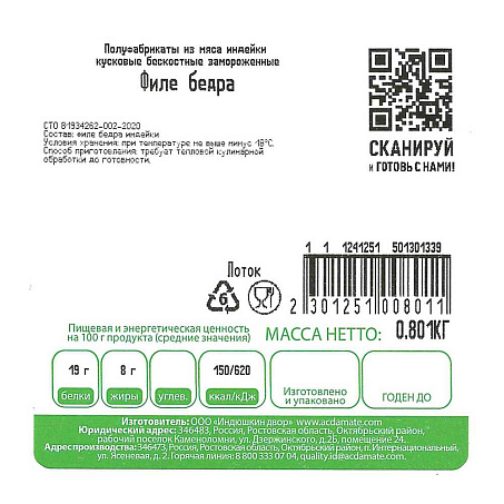 Индейка филе бедра ~1кг/лоток Индилайт® Россия (ПУ) (КОД 99469) (-18°С)