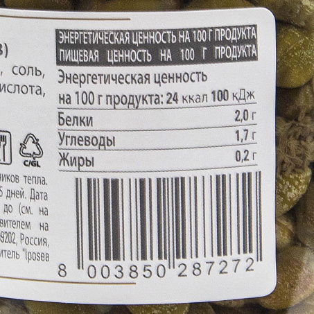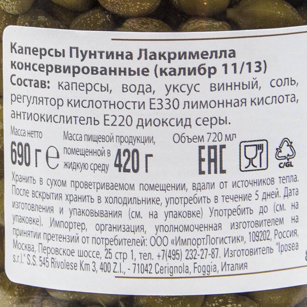 Каперсы в уксусе 11-13мм Лакримелла Пунтина 690гр/720мл (осн.пр.420гр) ст/б IPOSEA Италия(КОД 31779)(+18°С)