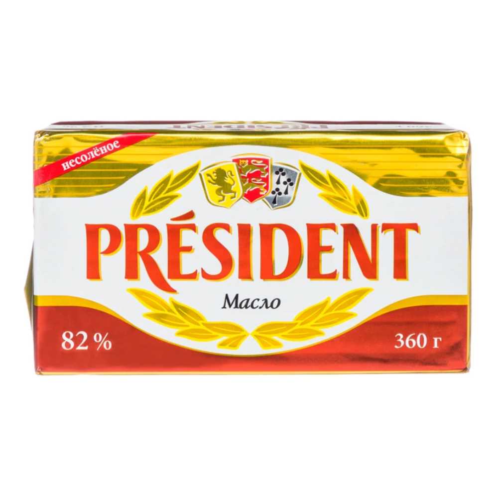 Масло 82% кисло-сливочное несол 360гр в/с President Беларусь (125201) (КОД 40854) (0°С)