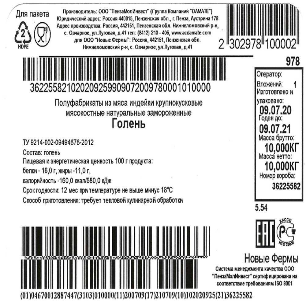 Рекомендации по приготовлению: Подвергнуть термической обработке до кулинарной готовности
