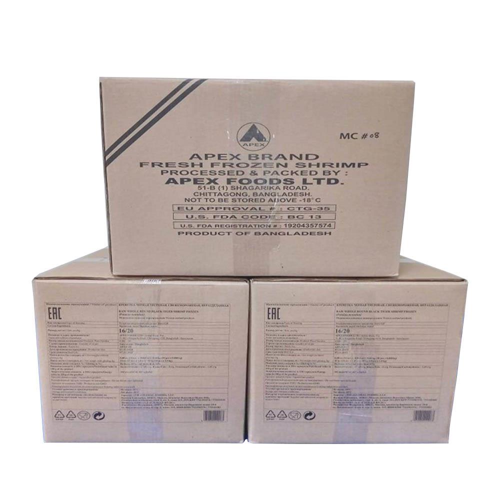 Креветки тигровые черные с/г в панцире 16/20 1кг карт/кор полу-IQF 14%гл Бангладеш (ПУ) (КОД 44907)(-18°С)