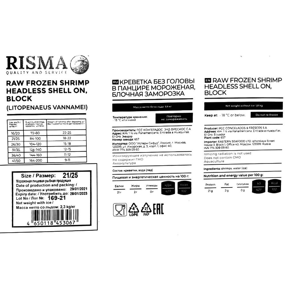 Креветки Ваннамей Королевские б/г в панцире 21/25 (lb) 1,8кг/блок Эквадор (ПУ) (КОД 46277) (-18°С)