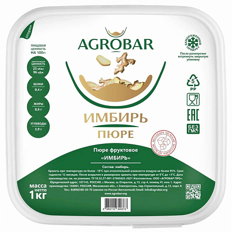 Пюре имбирь без сахара 100% 1кг пл/конт Agrobar™ Россия (КОД 46554) (-18°С)