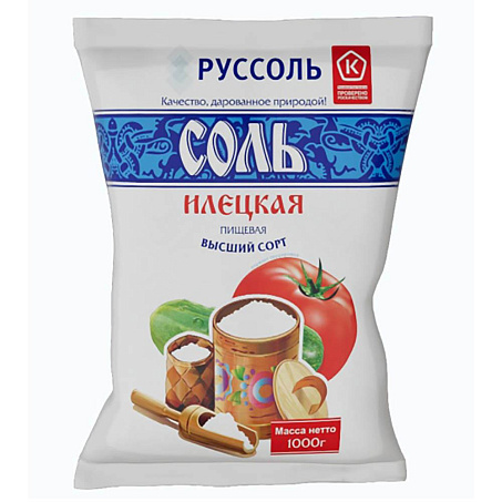 Соль каменная поваренная пищевая 1кг/пакет пом.№1 в/с ГОСТ Илецкая Руссоль (КОД 46874) (+18°С)
