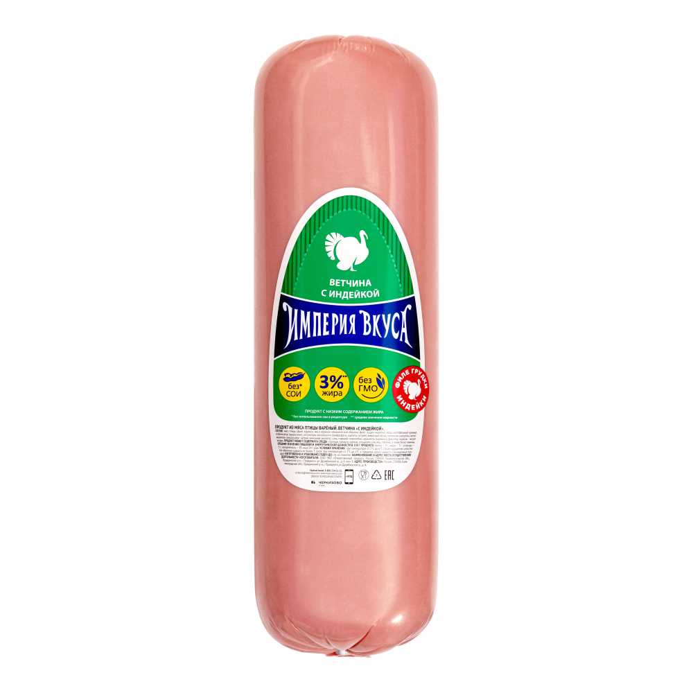 Продукт охлажденный из мяса птицы варёный. Ветчина «С индейкой». Продукт в непроницаемой модифицированной оболочке.