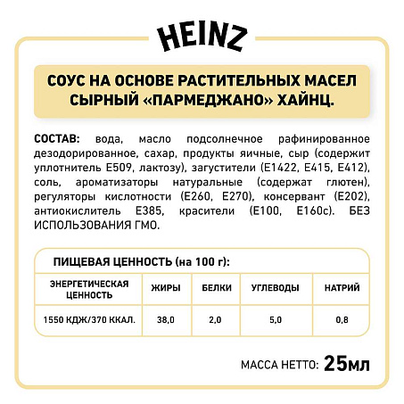Соус сырный Parmegiano порц. дип-пот 25млх125шт/кор Heinz™ Россия (КОР) (КОД 51513) (0°С)