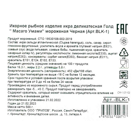 Икра Масаго (сельди) черная 500гр пл/конт "Умами" Прилов Россия (КОД 52974) (-18°С)