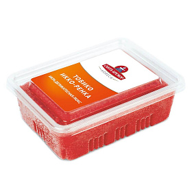 икра сельди атлантической, соль, сахар, сироп глюкозно-фруктозный, усилитель вкуса и аромата глутамат натрия (Е621), соевый соус (вода питьевая, соевые бобы, пшеничная мука, краситель сахарный колер IV), регуляторы кислотности: лимонная кислота (Е330), ацетат натрия (Е262), консерванты: сорбат калия (Е202), бензоат натрия (Е211), краситель (Е151, Е124, Е102, Е133).