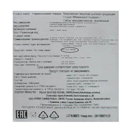 Рекомендации по приготовлению: Подвергнуть термической обработке до кулинарной готовности.