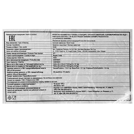 Креветки Ваннамей Королевские б/г в панцире 21/25 Н 1,8кг/блок Индия (НС) (ПУ) (КОД 53321) (-18°С)