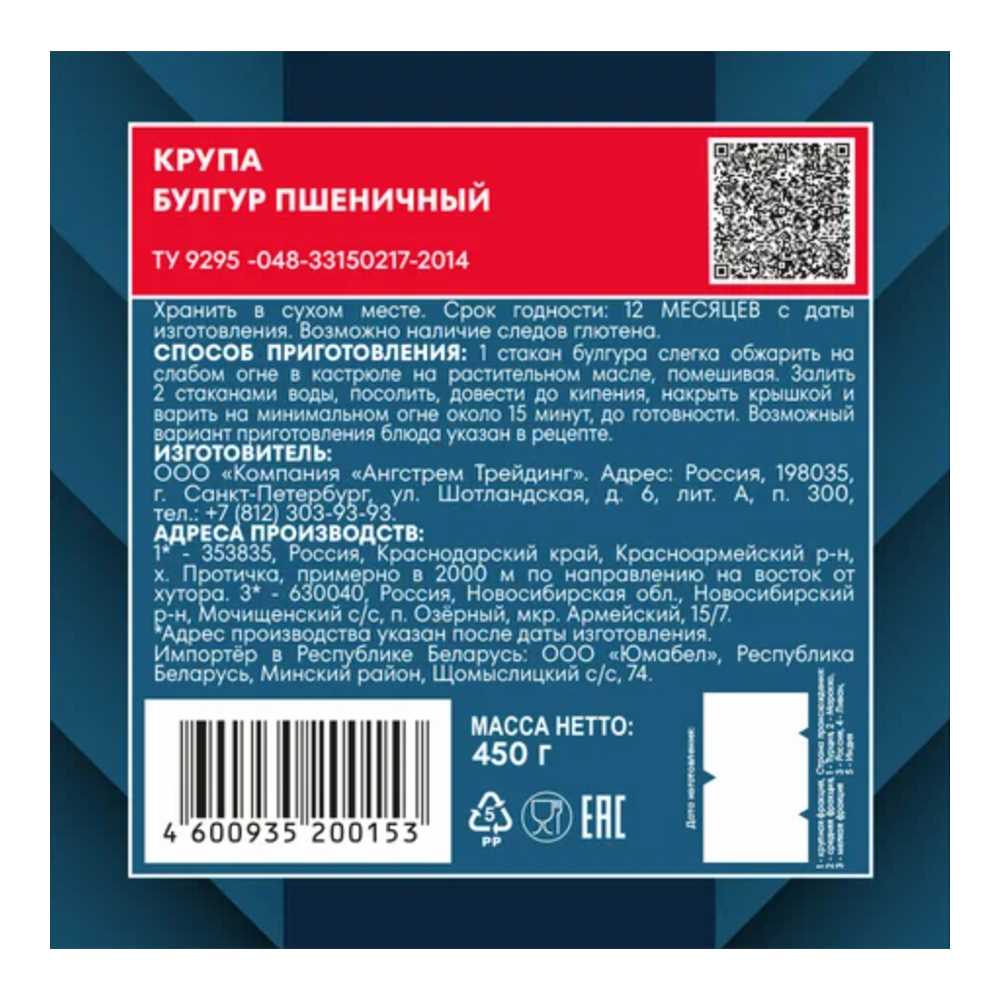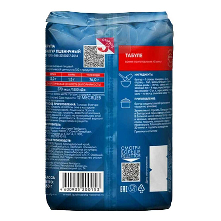 Булгур – это крупа из твёрдой пшеницы. Пшеничные зёрна замачивают, пропаривают и высушивают (традиционно — на солнце), затем их очищают от оболочки и дробят. В результате получается крупа, которую просеивают и делят в соответствии с размером частиц на мелкий, средний и крупный булгур. Булгур ТМ «Националь» крупного размера, его не требуется промывать и замачивать перед приготовлением.
