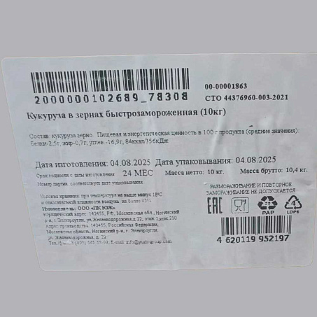 Кукуруза зерно с/м 10кг/кор ПК Юж Россия (КОР) (КОД 53593) (-18°С)