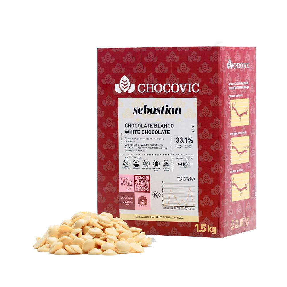 Шоколад белый 34,6% таблетки 1,5кг/уп Sebastian Chocovic Россия (CHW-S4CHVC-69B) (КОД 53885)(+18°С)