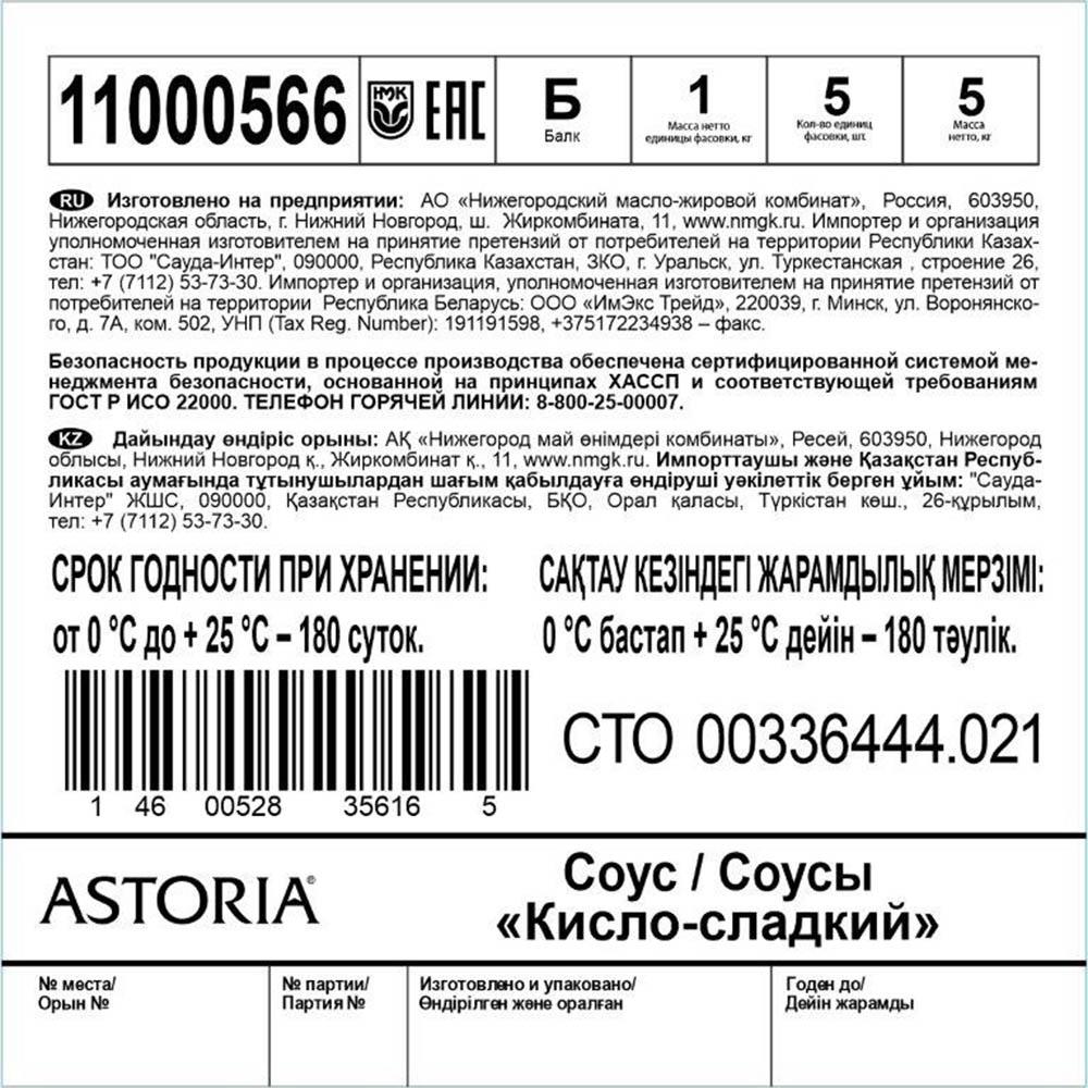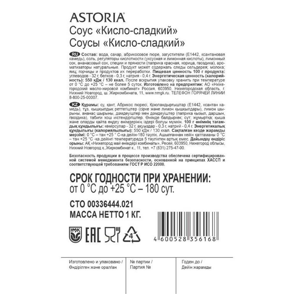 Вода, сахар, абрикосовое пюре, загустители (Е1442, ксантановая камедь), соль, регуляторы кислотности (уксусная и лимонная кислоты), лимонный сок, ананасовый сок, специи и пряности (паприка красная, корица, гвоздика), ароматизаторы натуральные.
