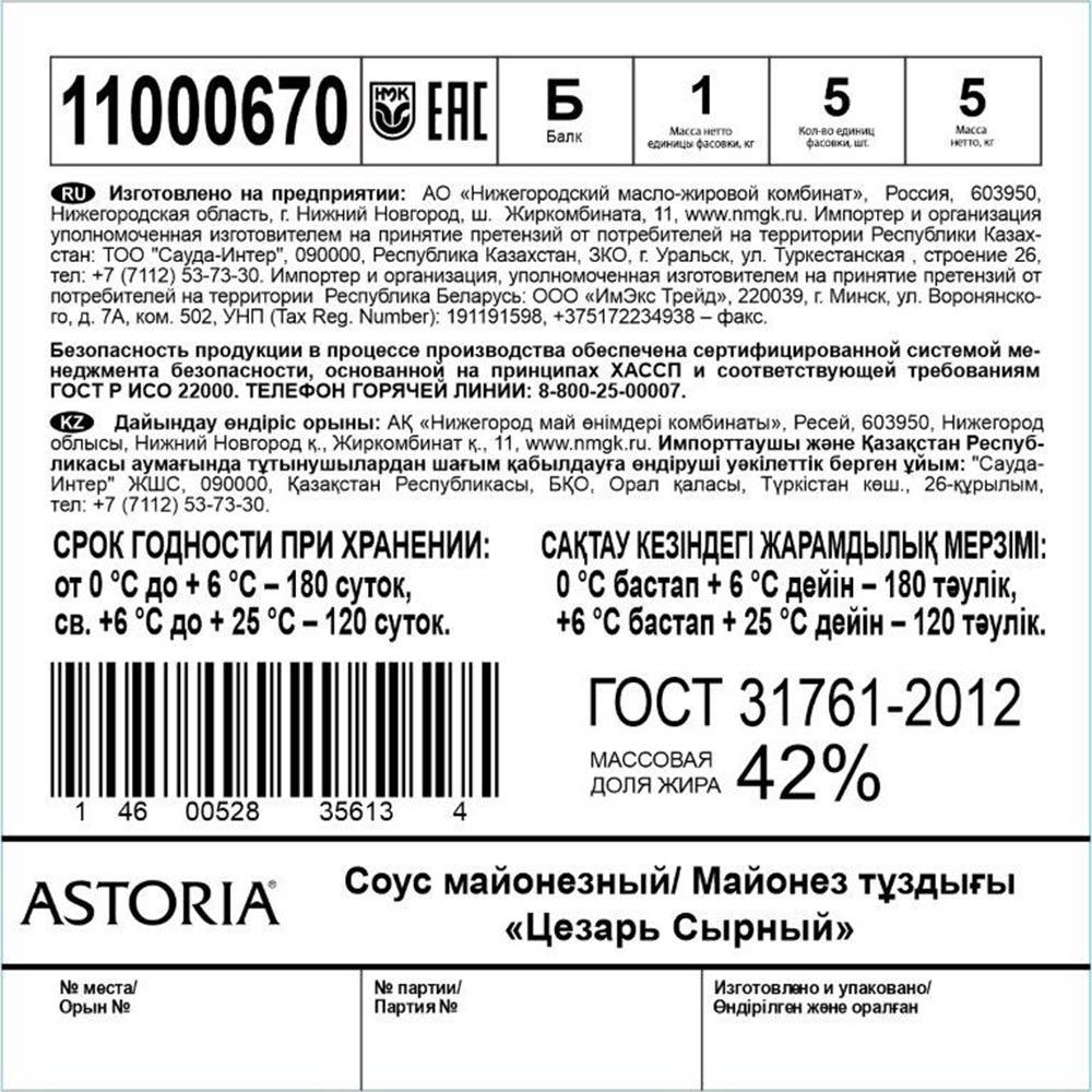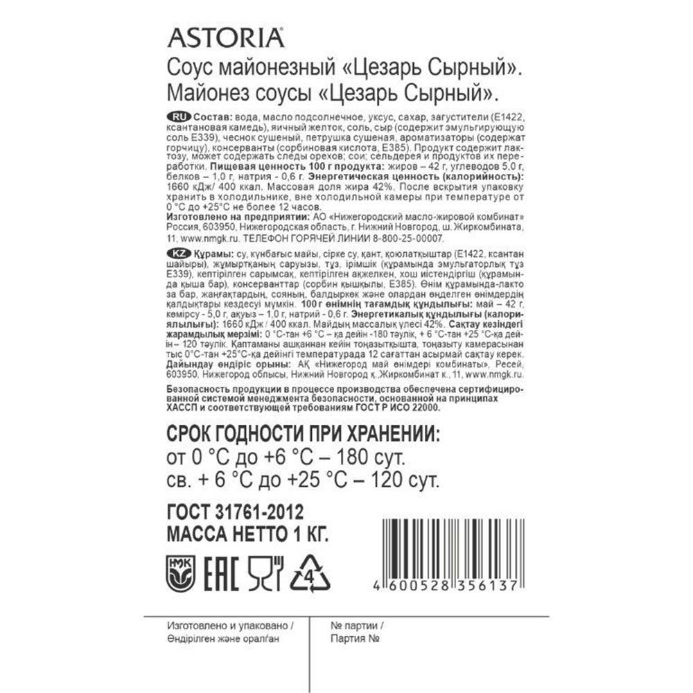 Вода, масло подсолнечное, уксус, сахар, загустители (Е1422, ксантановая камедь), яичный желток, соль, сыр (содержит эмульгирующую соль Е339), чеснок сушеный, петрушка сушеная, ароматизаторы (содержат горчицу), консерванты (сорбиновая кислота, Е385). Продукт содержит лактозу, может содержать следы орехов; сои; сельдерея и продуктов их переработки.