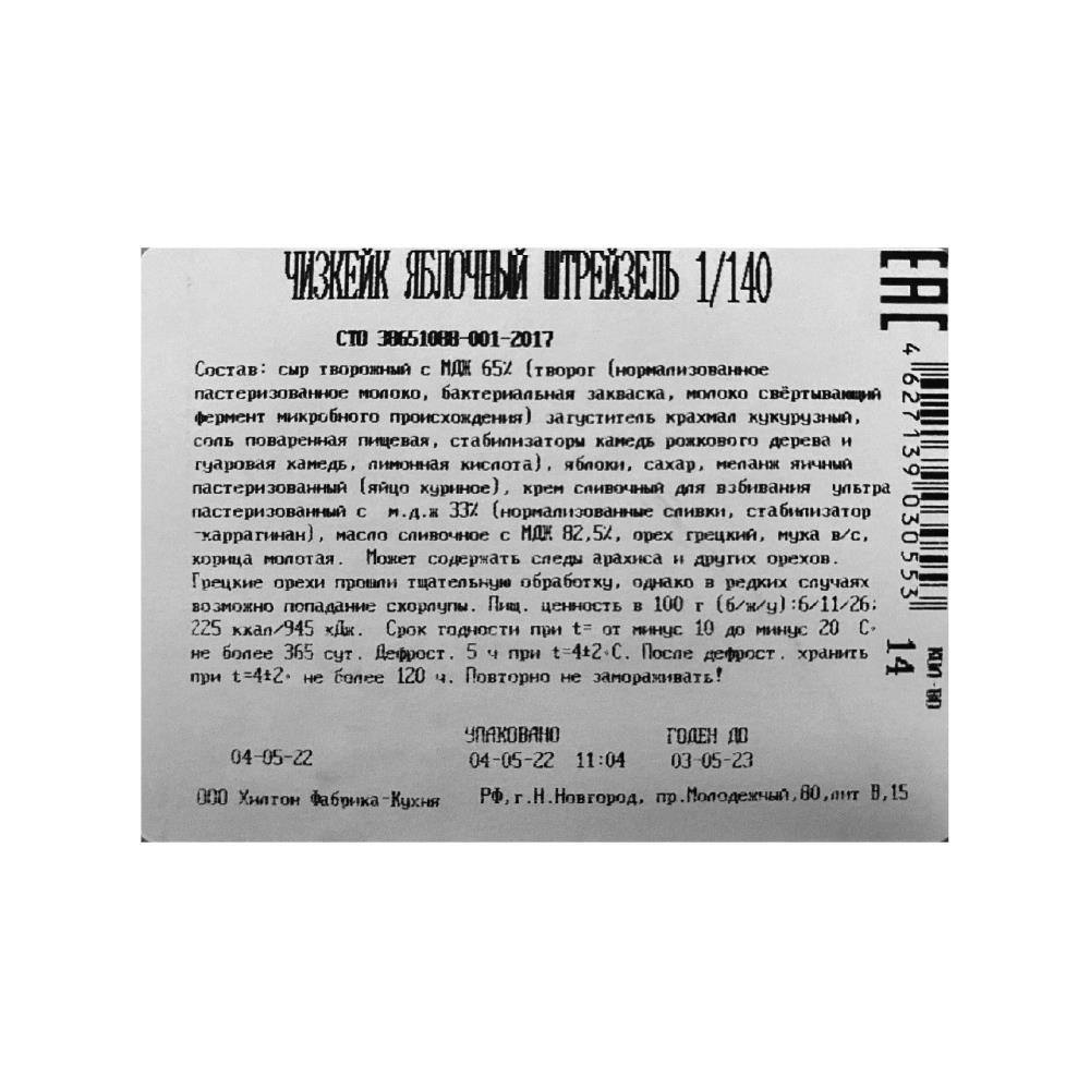 Торт Чизкейк Яблочный штрейзель 1,96кг 14 порц Бенье Хилтон Фабрика-кухня (64) (КОД 54424)(-18°С)