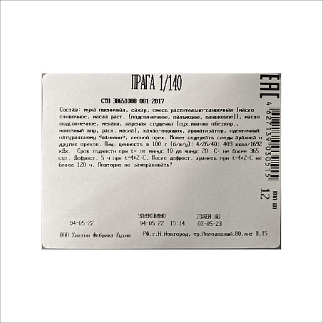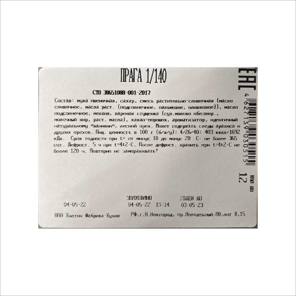 Торт Прага 1,68кг 12 порций Бенье Хилтон Фабрика-кухня Россия (46)(КОД 54430) (-18°С)