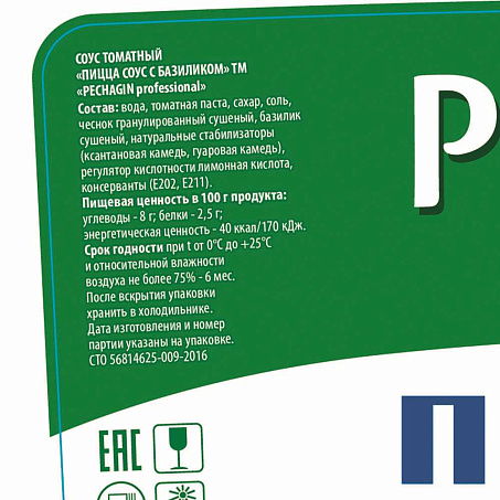 Пицца соус PECHAGIN professional «С БАЗИЛИКОМ» специально разработан для приготовления пиццы. Также подходит для приготовления заправок, супов, сложных соусов.Базилик, входящий в состав, придаёт соусу пряный, пикантный вкус. Изысканный вкус пицца соуса с базиликом станет отличным дополнением для блюд средиземноморской кухни.