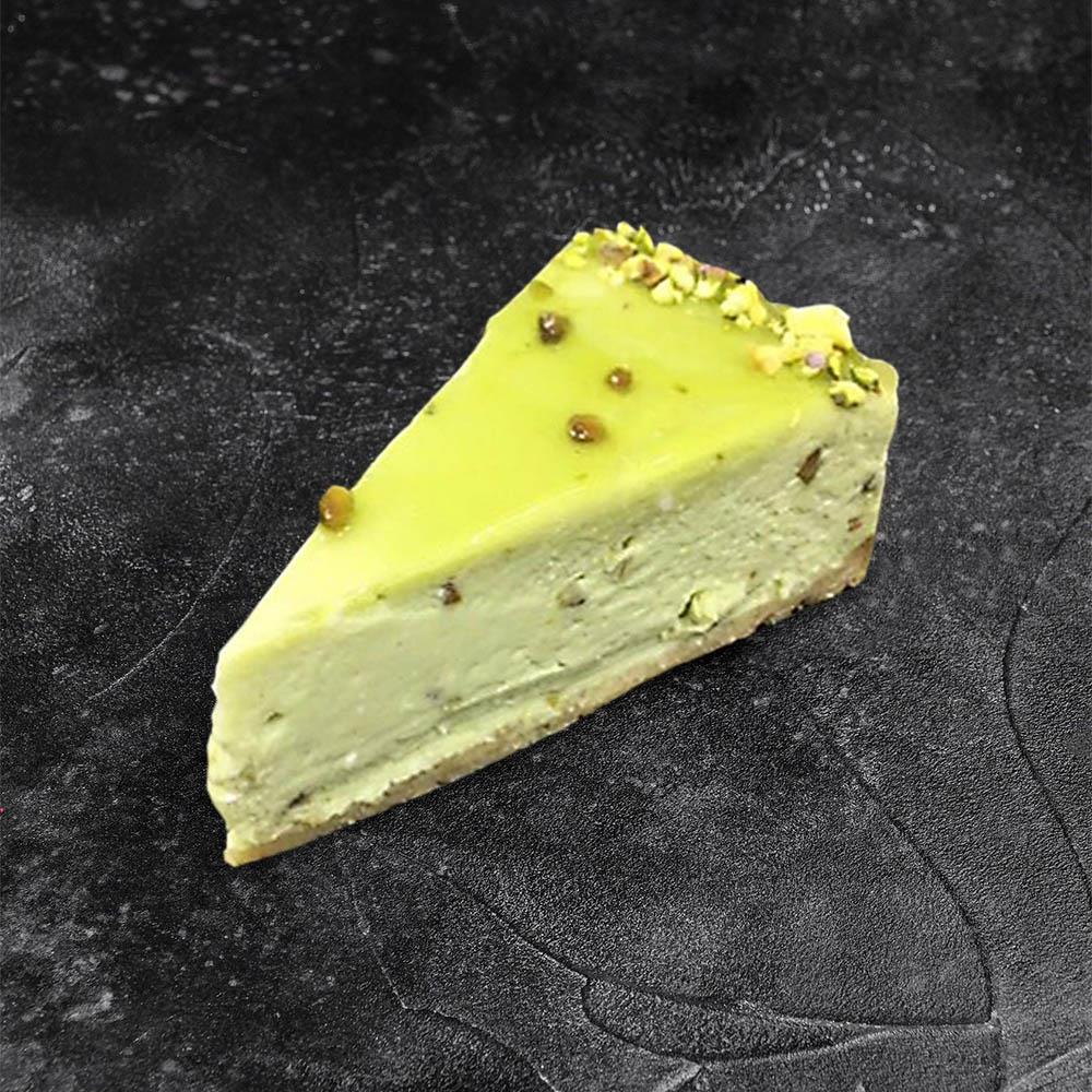 Нежный фисташковый чизкейк на тонком сливочно-песочном корже.