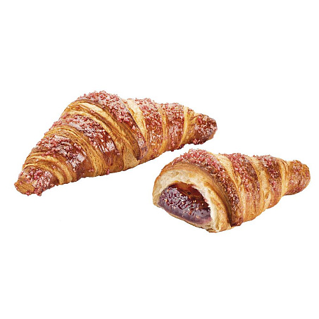 тесто (77,88%): мука ПШЕНИЧНАЯ (происхождение: Франция), вода, МАСЛО СЛИВОЧНОЕ 14%, сахар, дрожжи, ГЛЮТЕН ПШЕНИЧНЫЙ, соль, эмульгатор: моно- и диацетил эфиры винной кислоты моно- и диглицеридов жирных кислот, улучшитель муки (антиокислитель Е300), дезактивированные дрожжи, мука ПШЕНИЧНАЯ осоложенная, энзимы (гемицеллюлаза, ксиланаза, амилаза, целлюлаза, трансглютаминаза). Наполнитель (16,47%): глюкозно-фруктозный сироп, сахар, кусочки малины (1,7%), малиновое пюре (1,7%), концентрированное малиновое пюре (0,6%), агент желирующий: пектин, альгинат натрия, кислота: лимонная кислота, цитрат кальция, концентрат фиолетовой моркови, натуральный ароматизатор. Посыпка (4,59%): сахар, глазирующий агент: шеллак Е904, красители: куркумин, карминовая кислота. Глазурь (1,06%): ЯЙЦО цельное. Содержит: молочные продукты, яйца, глютен. Может содержать следы орехов, сои. Продукт не содержит ГМО.