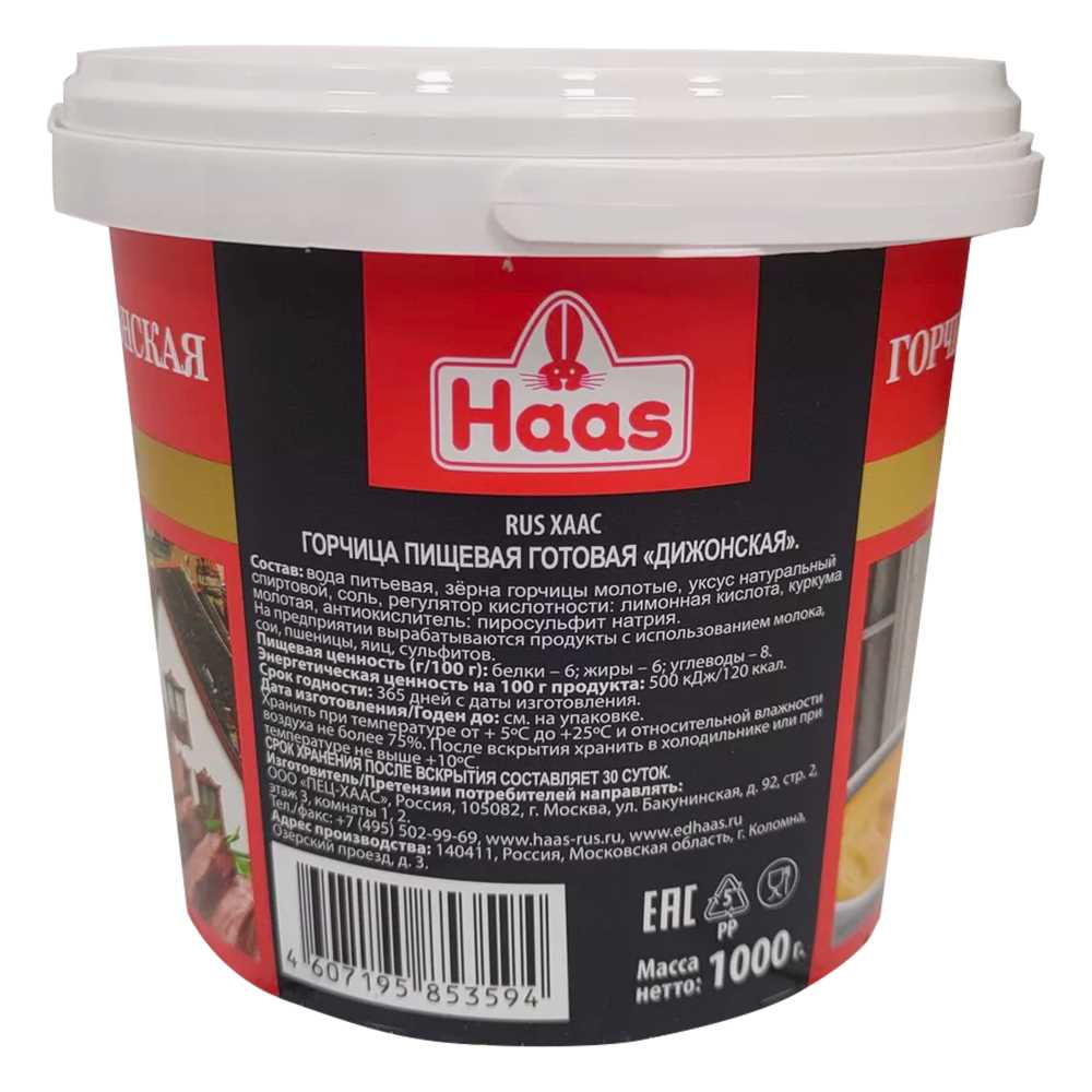 Горчица Дижонская 1кг пл/в Haas™ Россия (КОД 56406) (0°С)