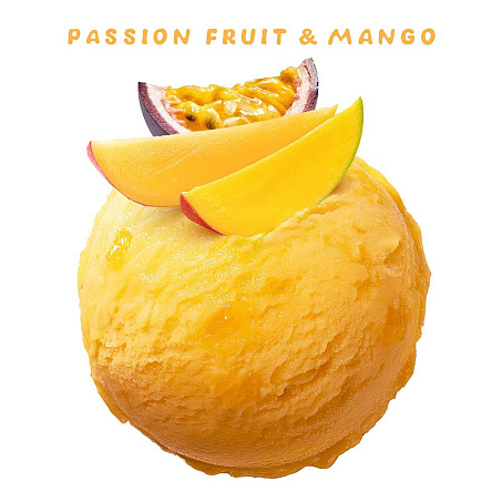 Пюре из маракуйи, вода питьевая, сахар, глюкоза, кусочки манго, глюкозный сироп, пюре из манго, сок лимонный концентрированный, Стабилизаторы: камедь рожкового дерева, гуаровая камедь, пектины; ароматизатор натуральный.