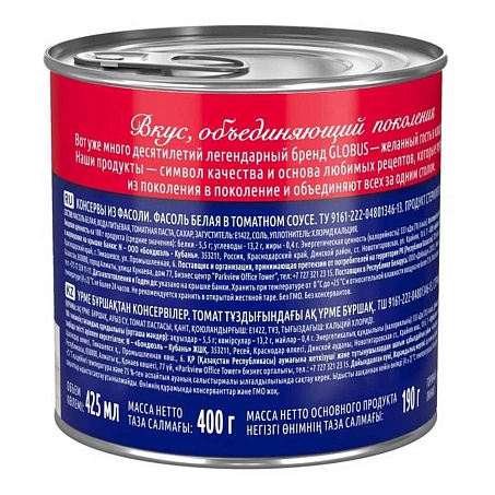фасоль белая, вода питьевая, сахар, томатная паста, загуститель: Е1422, соль, уплотнитель: хлорид кальция